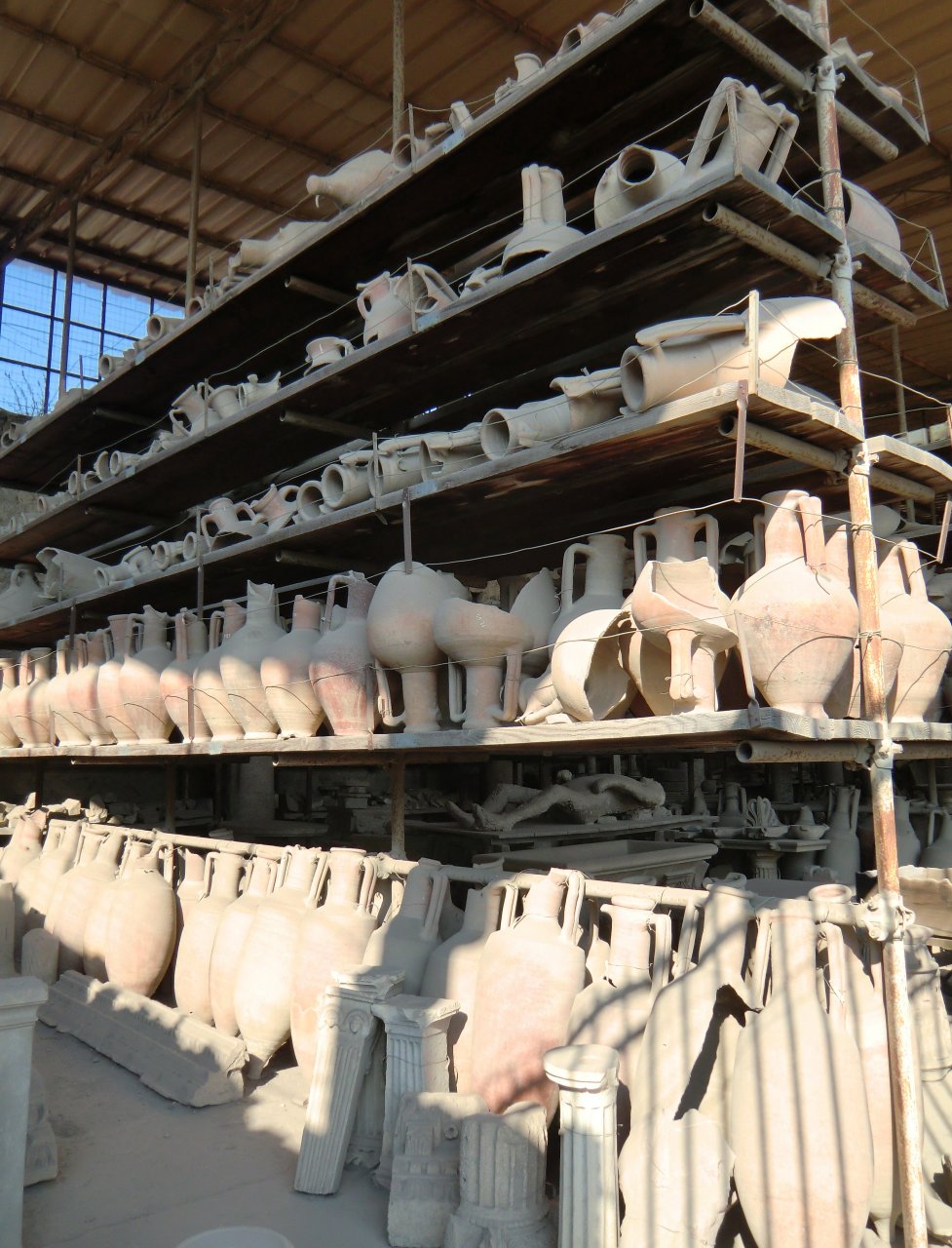 Trotz der Hitze des Tages durchstreifen wir heute Vormittag eine Altstadt. Genauer: eine alte Stadt, die 79 in einen Dornröschenschlaf fiel, der bis 1748 andauerte. Nach einem Ausbruch des Vesuvs vor 1932 Jahren unter einer 6 Meter hohen Asche- und Bimssteinschicht begraben, harren auch heutzutage noch weite Teile im Osten des ehemaligen Stadtgebiets ihrer Freilegung.